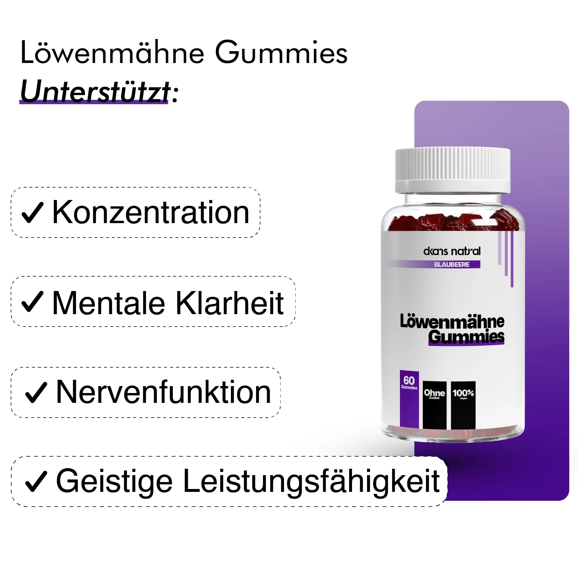 Die Löwenmähne Gummies kombinieren hochwertigen Löwenmähnenpilz-Extrakt (Hericium erinaceus) mit...
