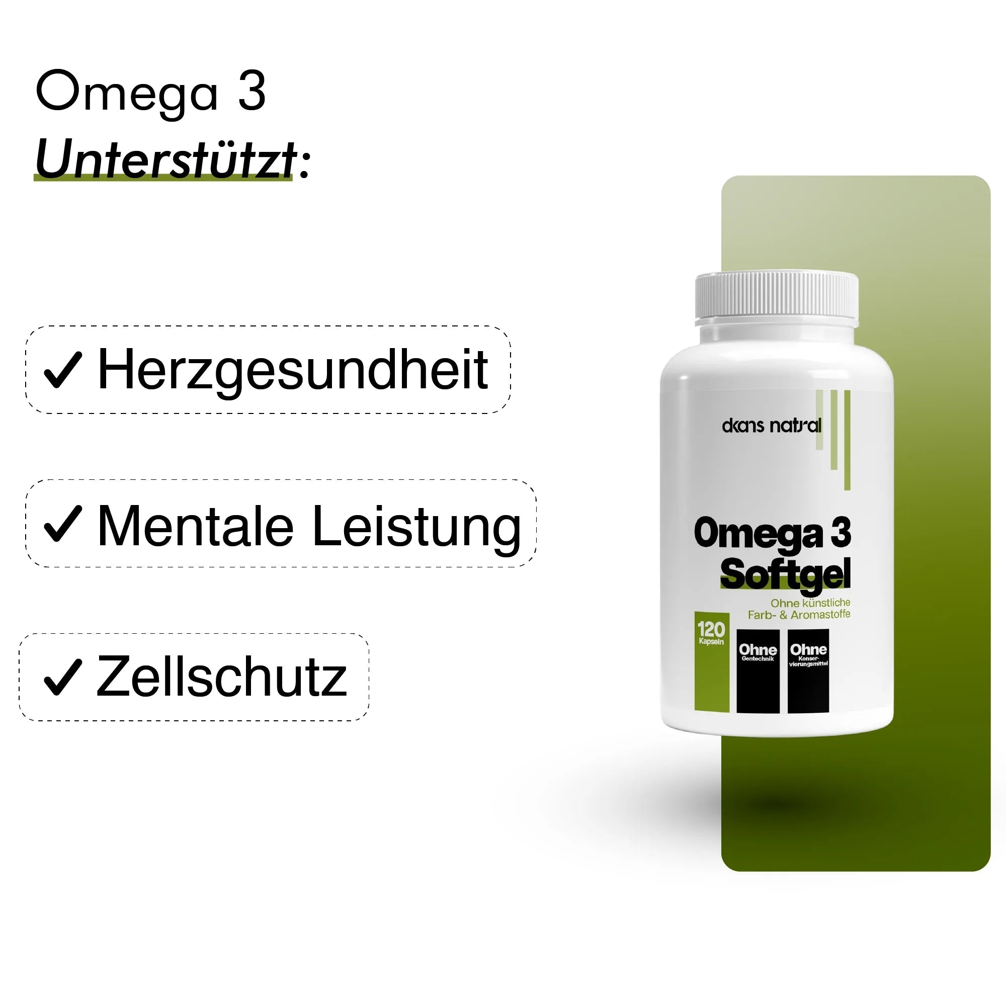 Die Omega-3 Softgels liefern hochwertiges Fischöl in Triglycerid-Form und...