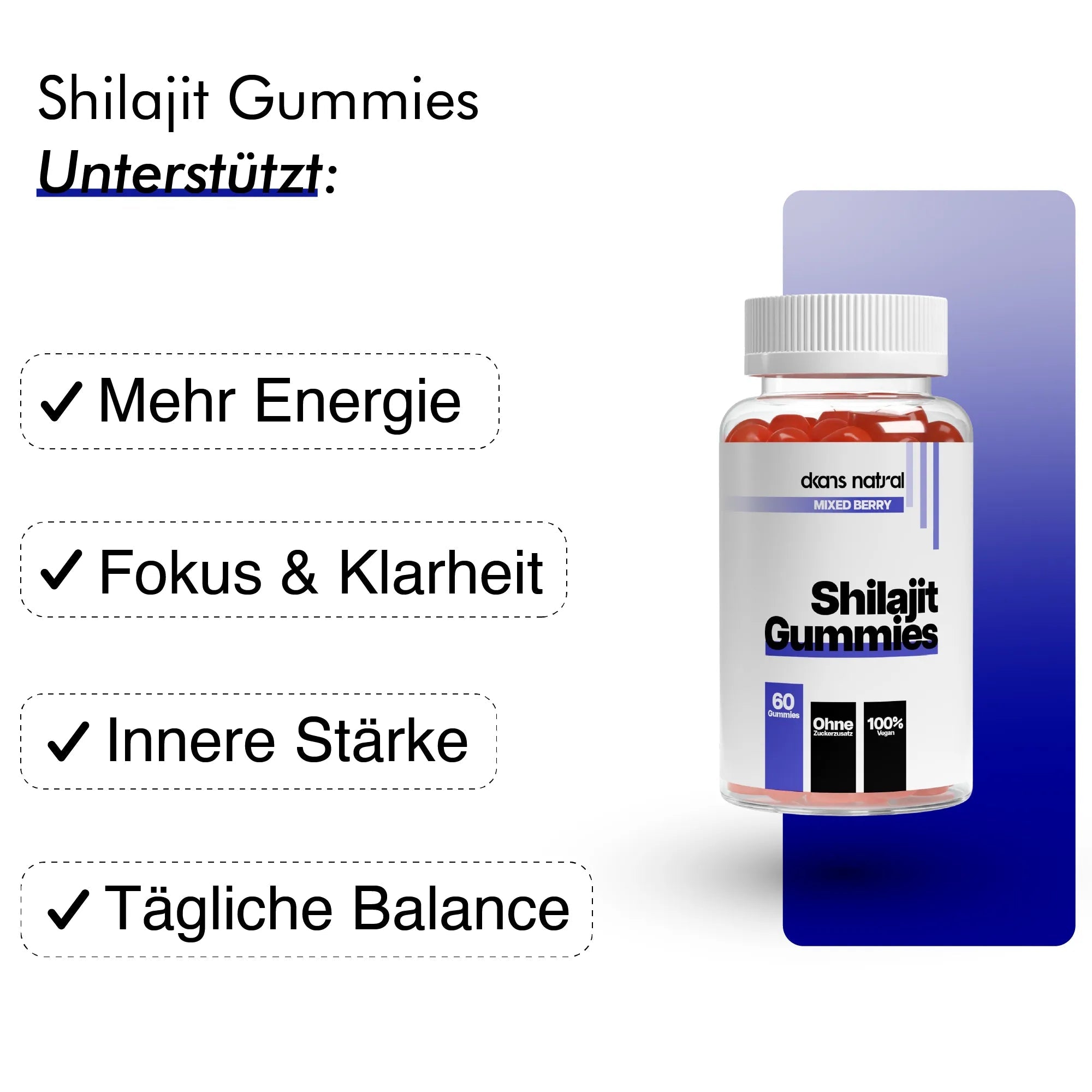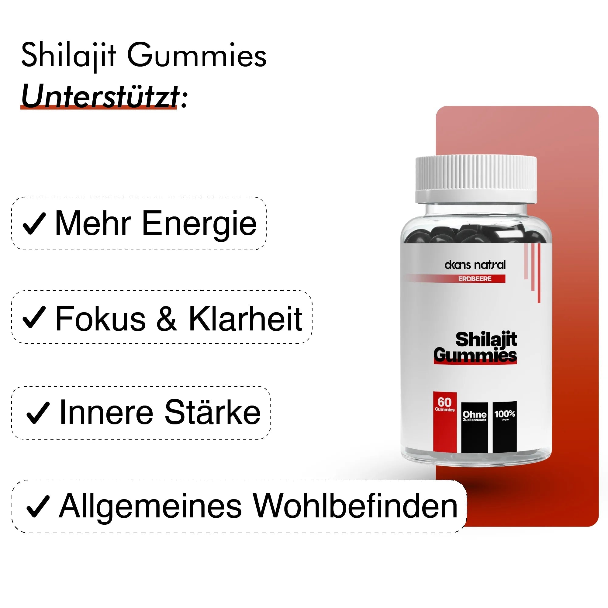 Die Shilajit Premium Gummies enthalten 17 % Shilajit-Extrakt und liefern...
